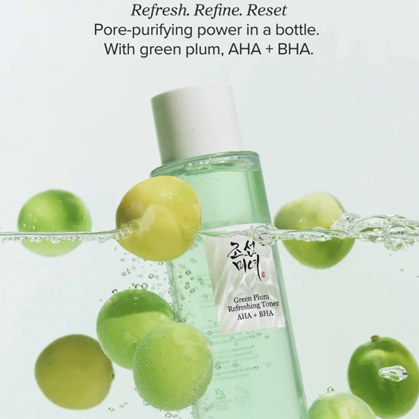 Beauty of Joseon Green Plum Toner is a gentle exfoliating toner designed to help clear buildup, refine pores, and leave skin feeling smoother without a harsh finish.